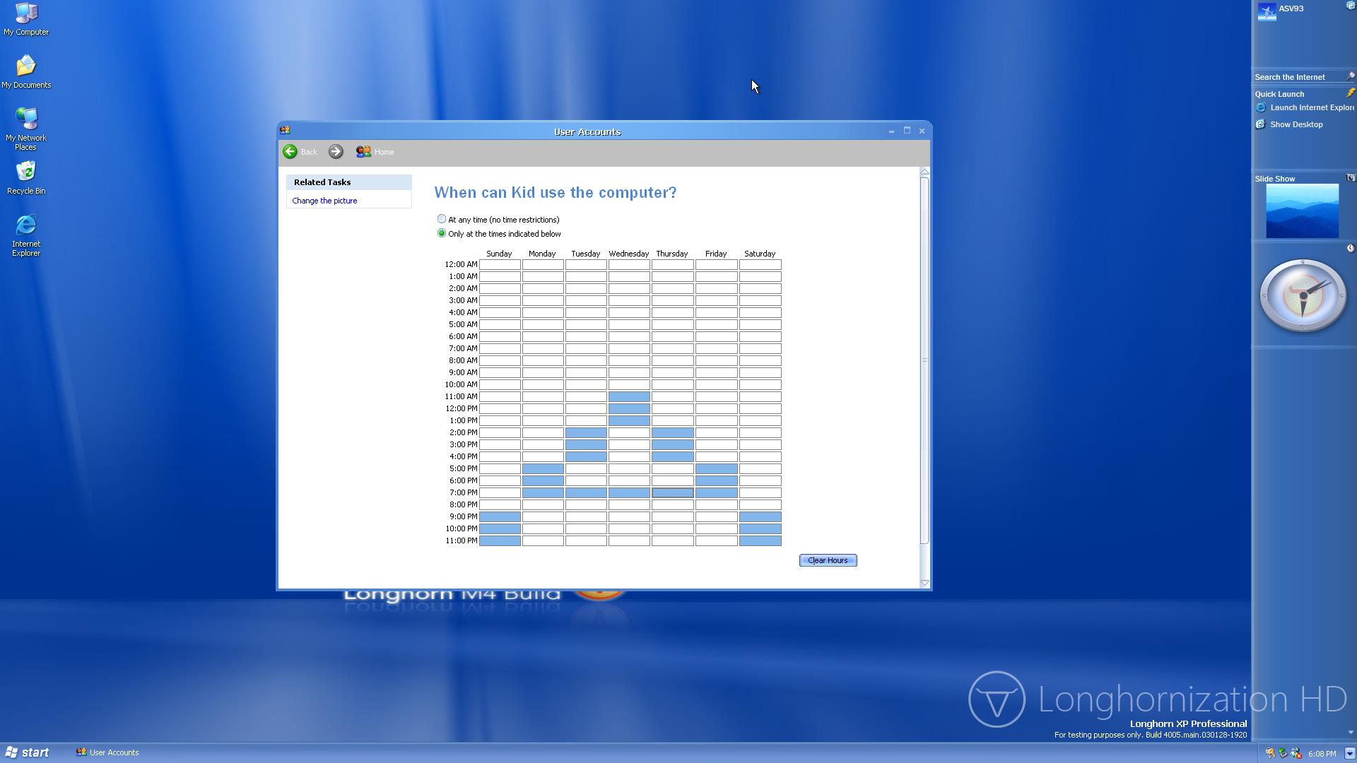 - You can set logon hours for limited user accounts in the Control Panel.